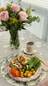 - Elige alimentos nutritivos: durante las horas de comida, prioriza frutas, verduras, proteínas y grasas saludables.