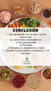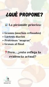 La pirámide se enfoca en cantidades y grupos de alimentos, pero deja afuera cosas muy importantes, como: